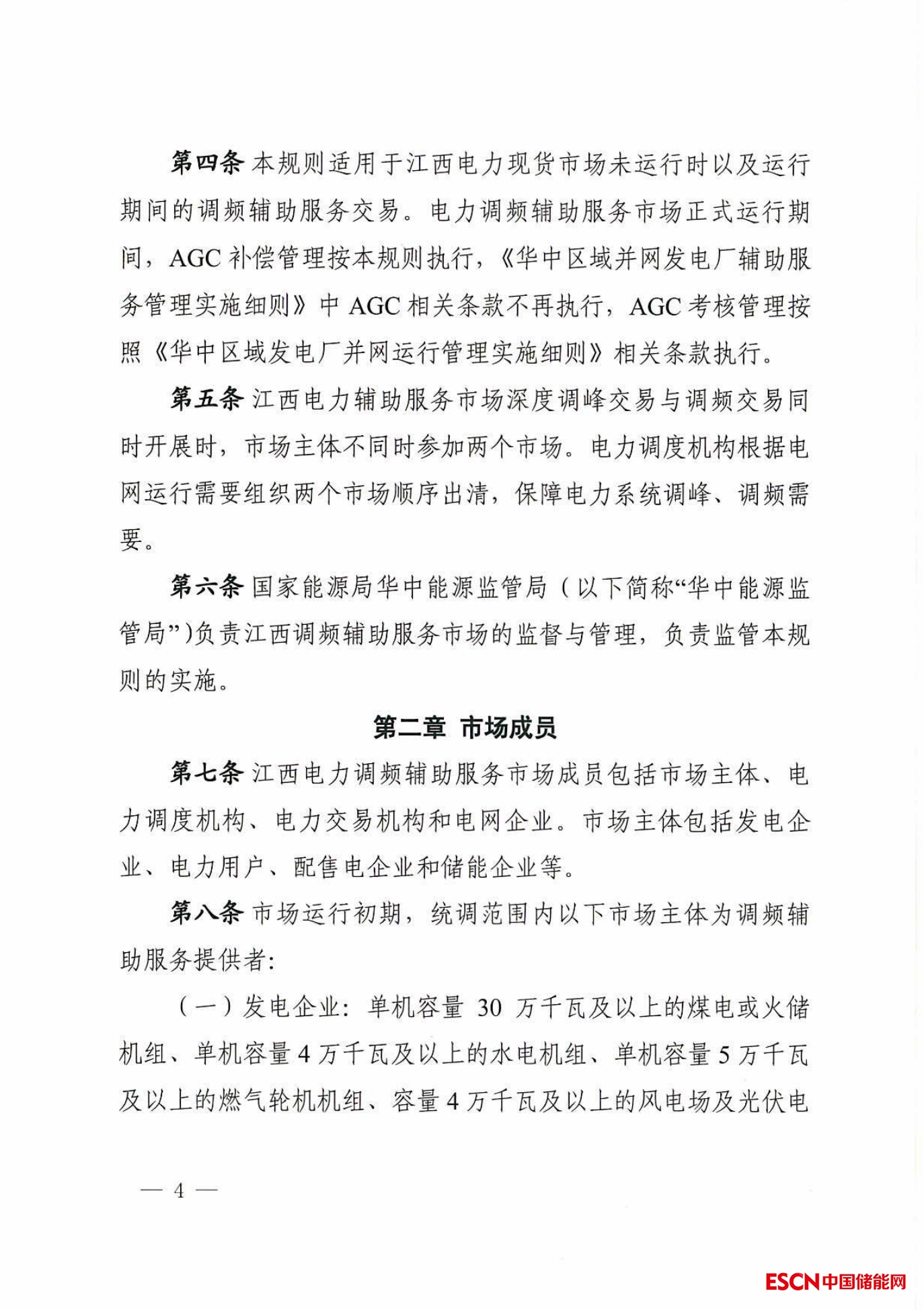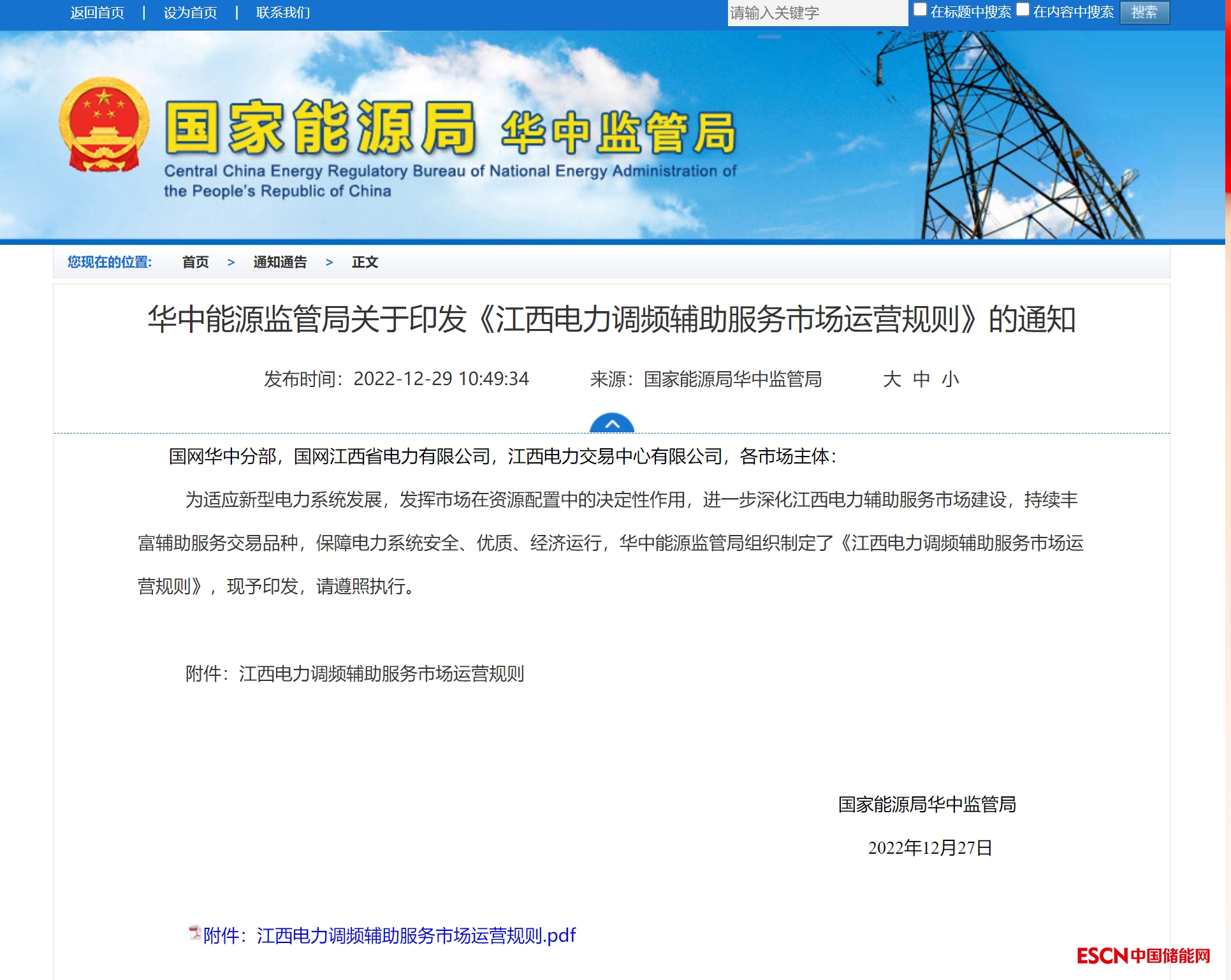 12月29日,華中能監(jiān)局印發(fā)了《江西電力調(diào)頻輔助服務(wù)市場運(yùn)營規(guī)則》(以下簡稱《運(yùn)營規(guī)則》),指出單機(jī)容量300MW及以上的火儲聯(lián)合機(jī)組、4MW/4MWh以上的獨(dú)立儲能電站及儲能裝置,風(fēng)儲、光儲可以為系統(tǒng)提供調(diào)頻輔助服務(wù)。