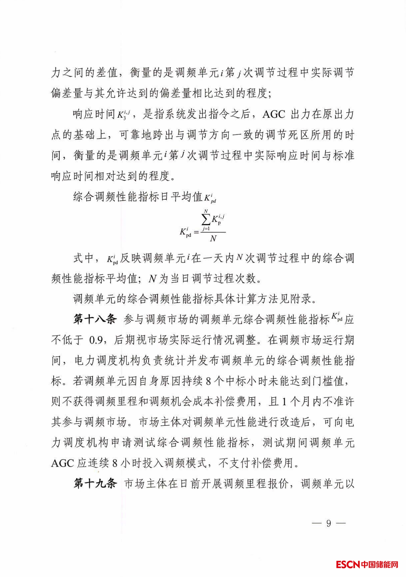 參與市場的調(diào)頻資源,綜合調(diào)頻性能指標(biāo)需不低于0.9。