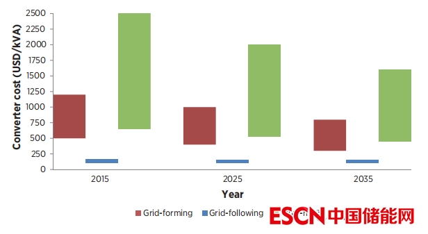 圖S3:2025年和2035年電網(wǎng)形成、網(wǎng)格跟隨和雙模轉(zhuǎn)換器的預(yù)期成本降低