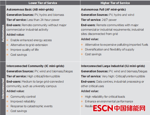 迷你網(wǎng)格可以根據(jù)其與網(wǎng)格的連接和所提供的服務(wù)水平進行分類。一個可再生的微型電網(wǎng)可以相互連接到主電網(wǎng),或者獨立于鄰近的電網(wǎng),在這種情況下,它被認(rèn)為是自主的??稍偕奈⑿碗娋W(wǎng)可以提供不同水平的服務(wù),從僅提供照明等基本服務(wù)到更高水平的服務(wù),如滿足商業(yè)能源需求。表S1提供了這些類別的概述。