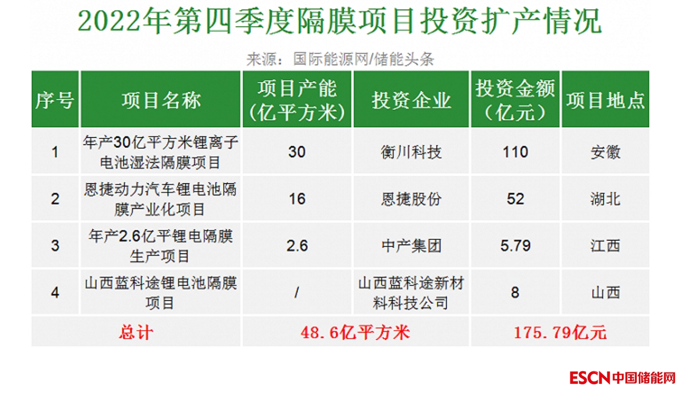 進入2022年,鋰電池隔膜領(lǐng)域的投資熱度依舊不減,衡川科技、恩捷股份、中產(chǎn)集團等產(chǎn)業(yè)鏈企業(yè)接連落地新項目,投資總額超175億元。