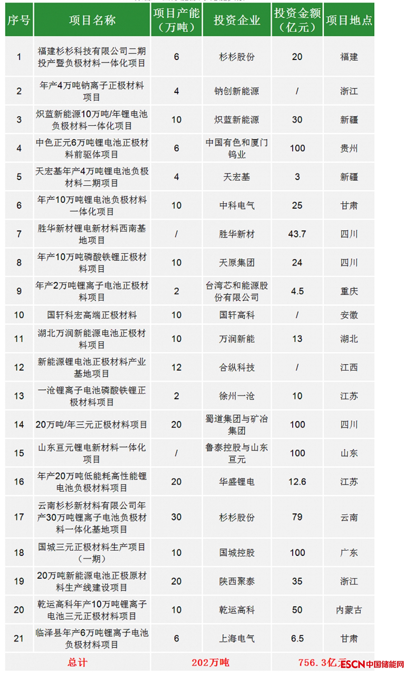 02 杉杉股份、中科電氣、合縱科技等投資擴產(chǎn)材料202萬噸