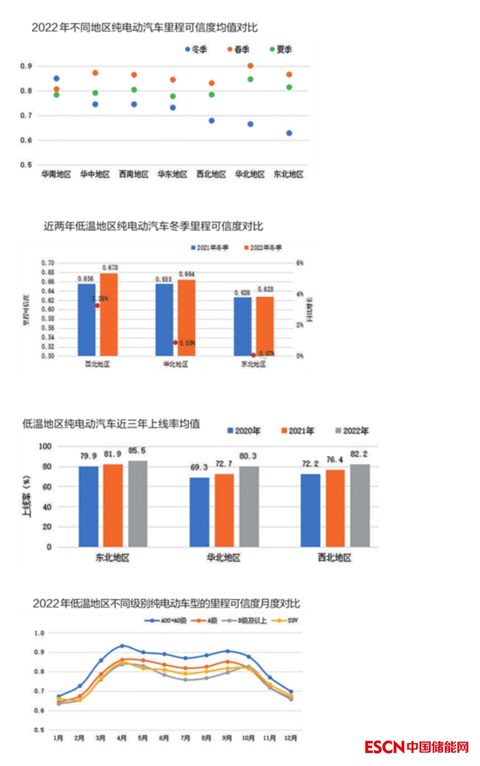 中國儲(chǔ)能網(wǎng)訊:在新能源汽車使用中,車輛實(shí)際續(xù)駛里程與宣傳不符是一個(gè)經(jīng)常被消費(fèi)者吐槽的問題,這在冬季表現(xiàn)得尤為明顯。近日,北京理工大學(xué)電動(dòng)車輛國家工程研究中心依托新能源汽車國家監(jiān)測(cè)與管理平臺(tái)(以下簡稱“國家監(jiān)管平臺(tái)”)超千萬輛級(jí)新能源汽車推廣及運(yùn)行數(shù)據(jù),推出《新能源汽車低溫行駛特征及使用》系列化研究報(bào)告。本期重點(diǎn)剖析冬季低溫地區(qū)(東北、華北及西北地區(qū))純電動(dòng)汽車?yán)锍炭尚哦燃靶履茉雌嚿暇€率情況。