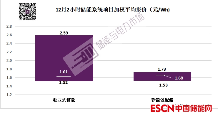獨(dú)立式儲(chǔ)能項(xiàng)目加權(quán)平均報(bào)價(jià)為1.61元/Wh;