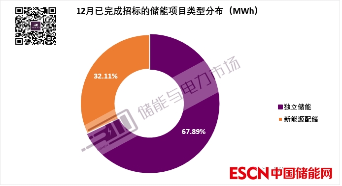 12月招投標(biāo)市場(chǎng)由獨(dú)立式儲(chǔ)能和新能源配儲(chǔ)二分天下。