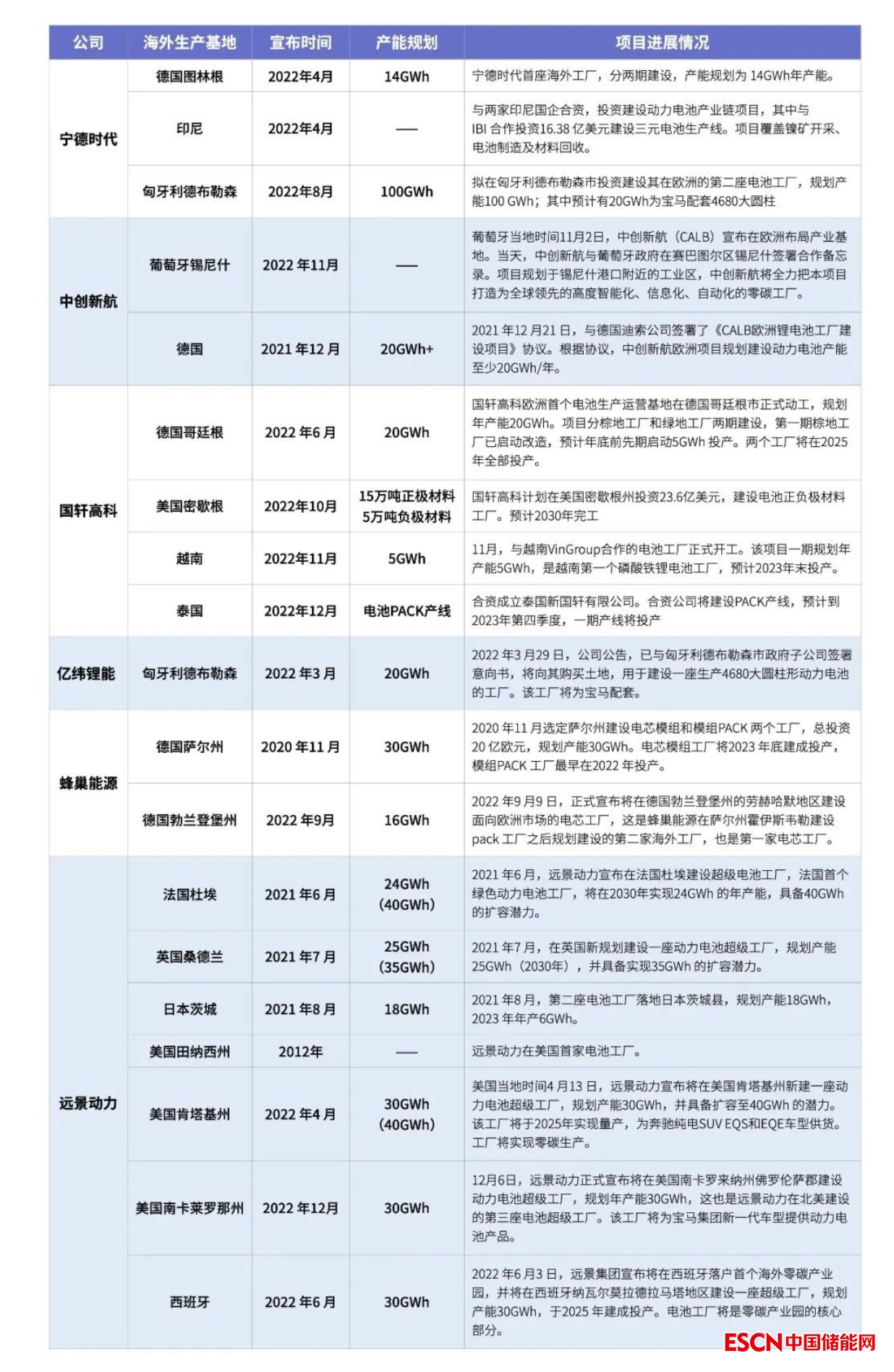 表:國(guó)內(nèi)動(dòng)力電池企業(yè)2022年海外建廠進(jìn)展