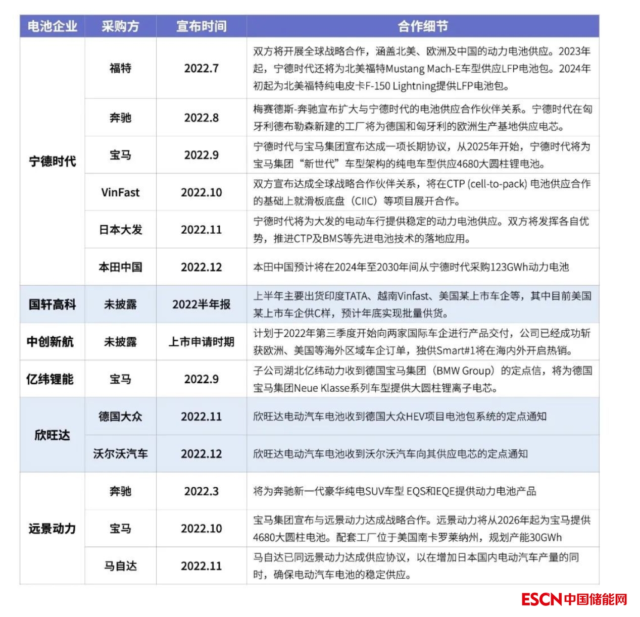 表:國(guó)內(nèi)動(dòng)力電池企業(yè)2022年海外業(yè)務(wù)合作進(jìn)展情況