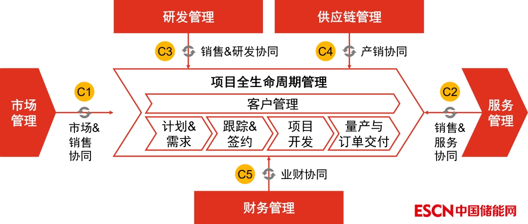 1個重點,圍繞項目進(jìn)行全生命周期管理;5個協(xié)同分別為:市場和銷售的協(xié)同,銷售和服務(wù)的協(xié)同,銷售和研發(fā)的協(xié)同,產(chǎn)銷協(xié)同,業(yè)務(wù)和財務(wù)的協(xié)同。