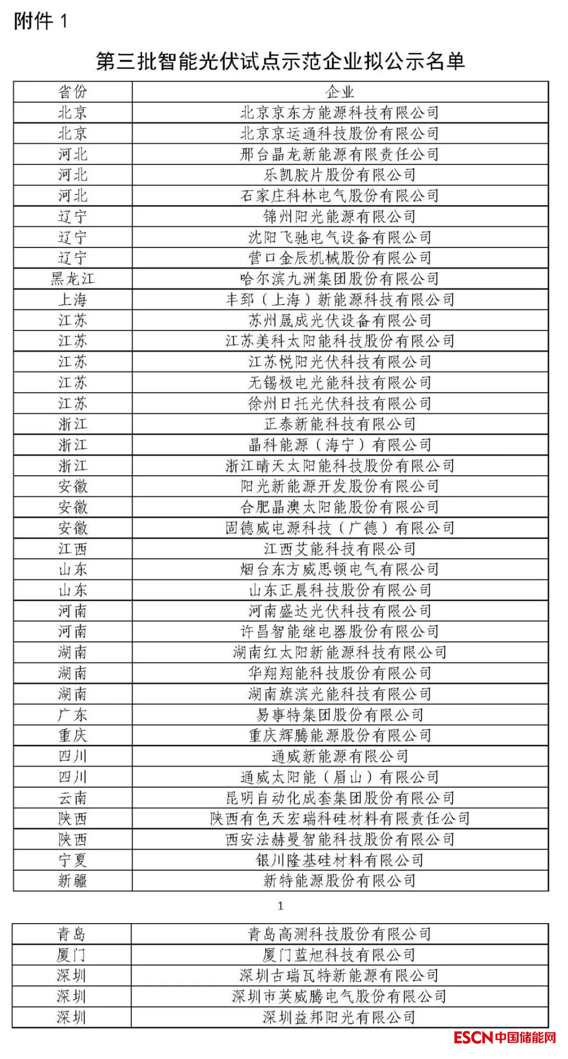 1.第三批智能光伏試點示范企業(yè)擬公示名單