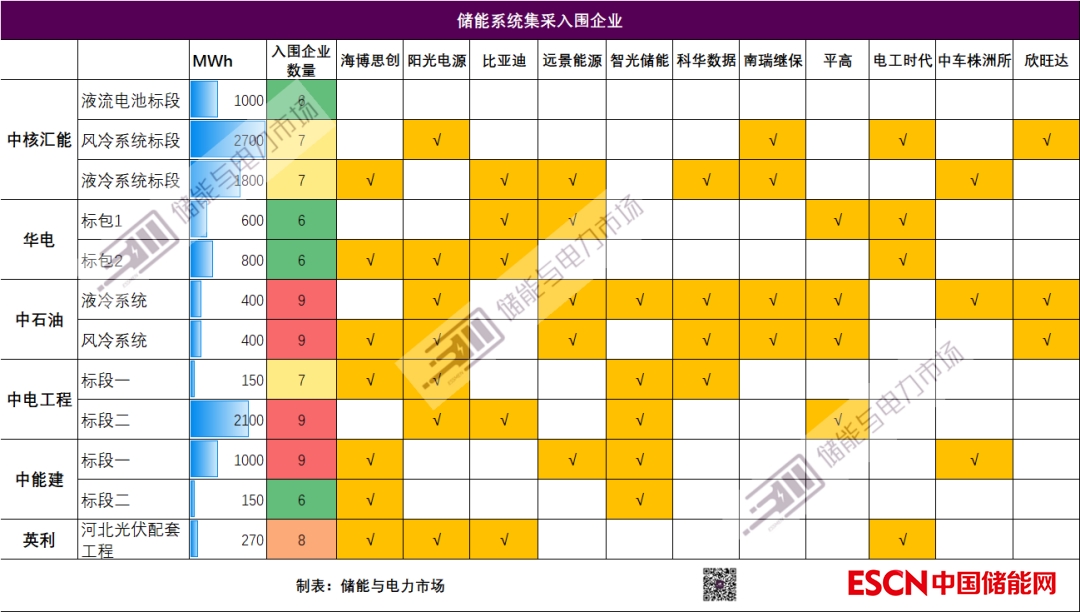 儲能系統(tǒng)框架采購: 海博思創(chuàng)、陽光電源入圍次數(shù)最多