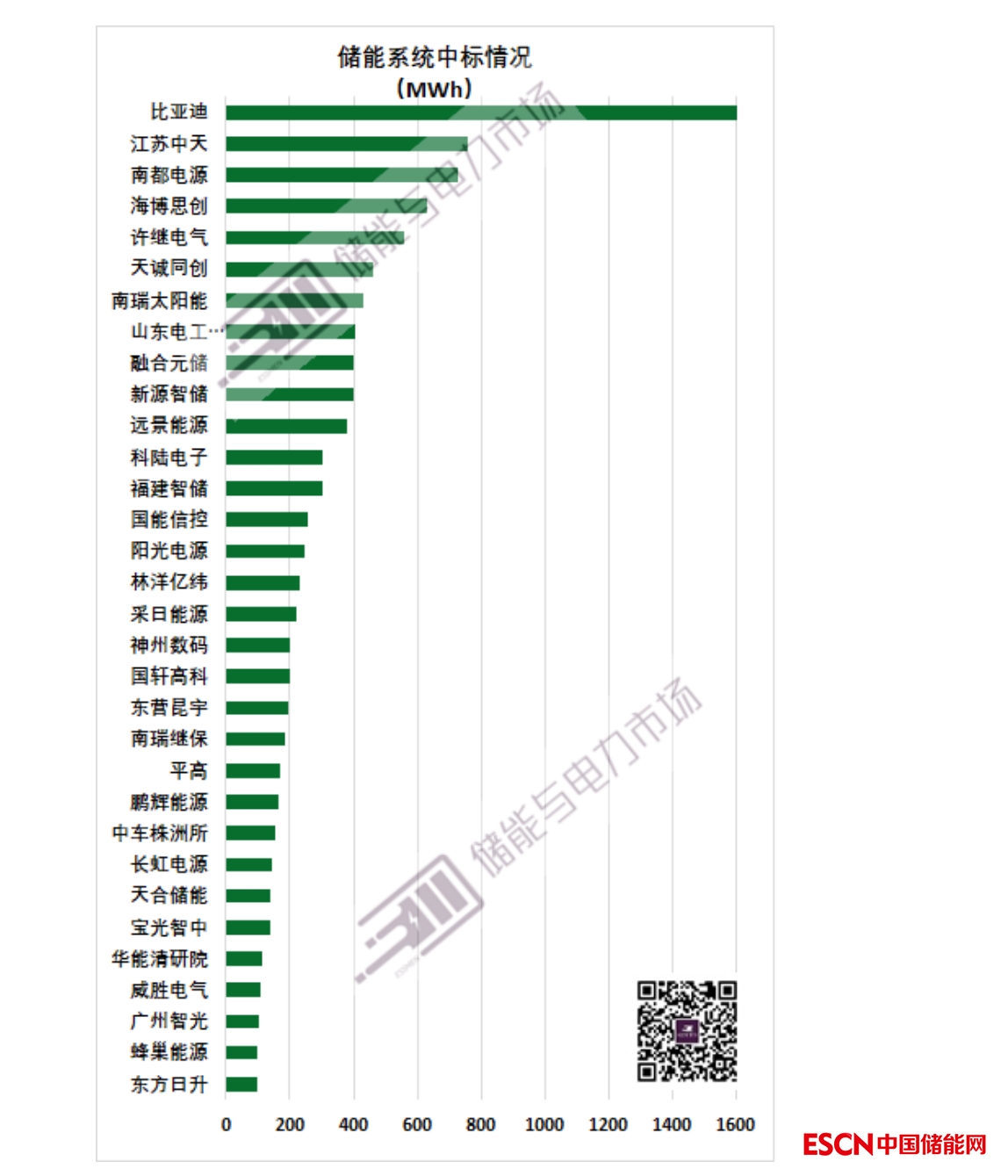 儲能項目中標: 比亞迪規(guī)模遙遙領(lǐng)先, 許繼電氣數(shù)量最多