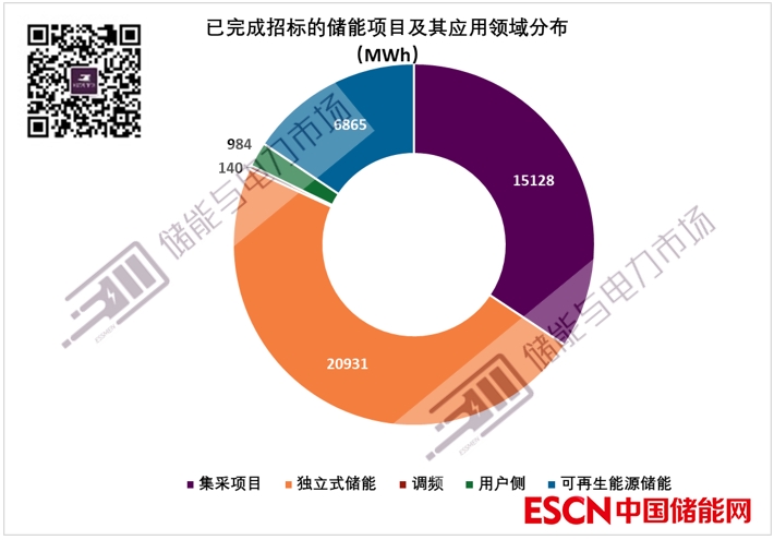 2022年中國已完成招標工作的44GWh儲能項目共涉及獨立式儲能電站、可再生能源儲能、用戶側(cè)、調(diào)頻和集采等不同類型。其中獨立式儲能項目占比48%,集采項目占比34%。