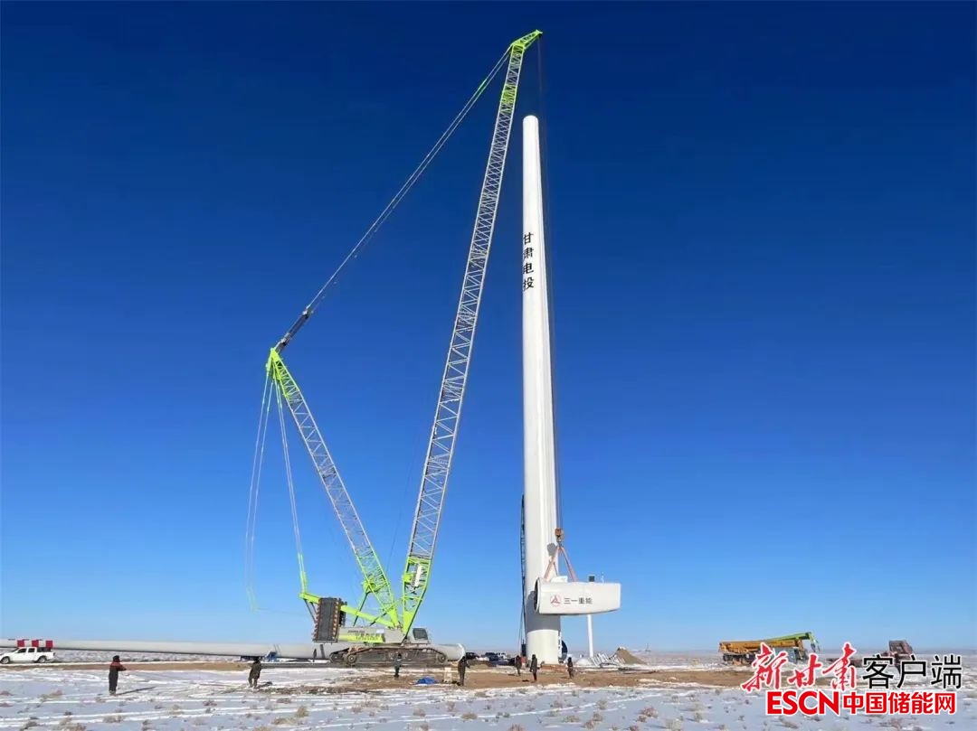在我國首個千萬千瓦級多能互補綜合能源基地——隴東能源基地,“隴電入魯”重點配套新能源電源項目,華能600萬千瓦風光儲綜合新能源示范項目首臺風機成功吊裝。
