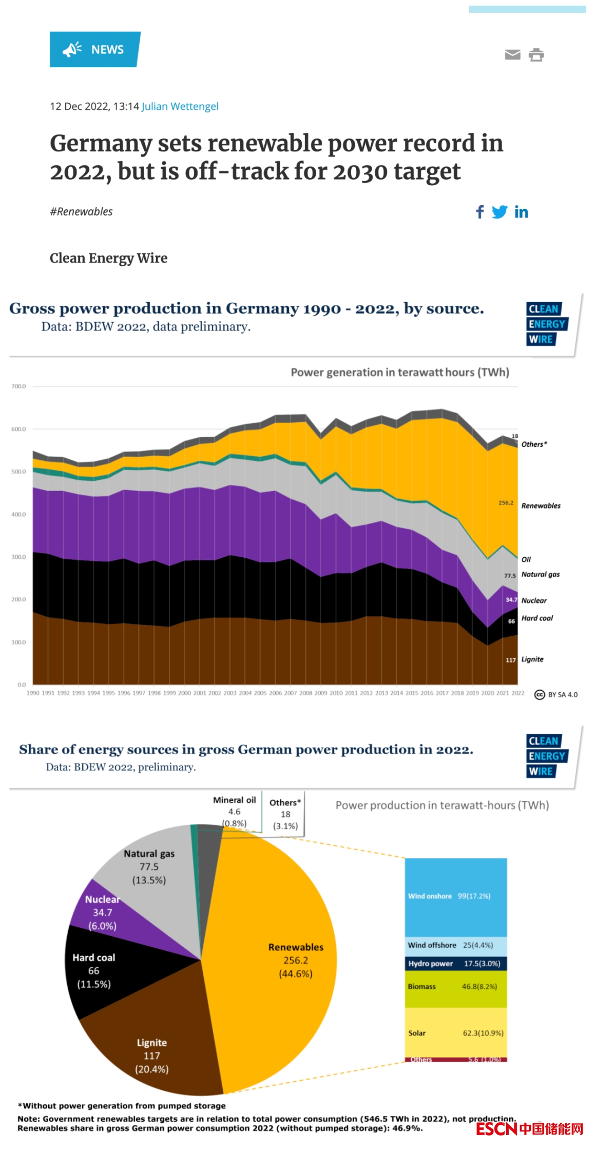 2022年可再生能源將占德國(guó)總用電量的44.6%(高于2021年的41%)。2020年,德國(guó)可再生能源在電力使用中所占比例曾達(dá)到45.2%。