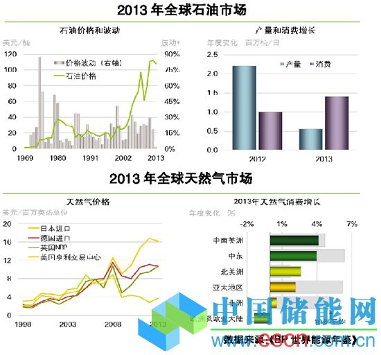 《年鑒》指出,經(jīng)濟(jì)狀況對能源需求的影響依然明顯。2013年,全球一次能源消費(fèi)增長了2.3%,增速快于2012年(增長1.8%),但低于過去10年2.5%的平均增速。