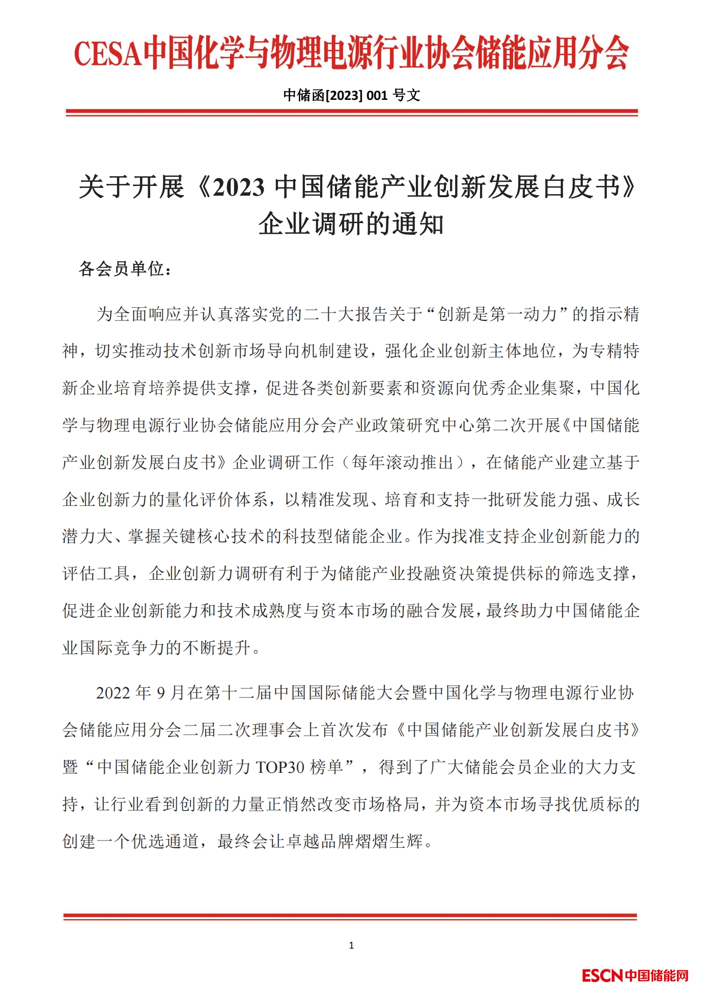 為全面響應(yīng)并認(rèn)真落實黨的二十大報告關(guān)于“創(chuàng)新是第一動力”的指示精神,切實推動技術(shù)創(chuàng)新市場導(dǎo)向機(jī)制建設(shè),強(qiáng)化企業(yè)創(chuàng)新主體地位,為專精特新企業(yè)培育培養(yǎng)提供支撐,促進(jìn)各類創(chuàng)新要素和資源向優(yōu)秀企業(yè)集聚,中國化學(xué)與物理電源行業(yè)協(xié)會儲能應(yīng)用分會產(chǎn)業(yè)政策研究中心第二次開展《中國儲能產(chǎn)業(yè)創(chuàng)新發(fā)展白皮書》企業(yè)調(diào)研工作(每年滾動推出),在儲能產(chǎn)業(yè)建立基于企業(yè)創(chuàng)新力的量化評價體系,以精準(zhǔn)發(fā)現(xiàn)、培育和支持一批研發(fā)能力強(qiáng)、成長潛力大、掌握關(guān)鍵核心技術(shù)的科技型儲能企業(yè)。作為找準(zhǔn)支持企業(yè)創(chuàng)新能力的評估工具,企業(yè)創(chuàng)新力調(diào)研有利于為儲能產(chǎn)業(yè)投融資決策提供標(biāo)的篩選支撐,促進(jìn)企業(yè)創(chuàng)新能力和技術(shù)成熟度與資本市場的融合發(fā)展,最終助力中國儲能企業(yè)國際競爭力的不斷提升。