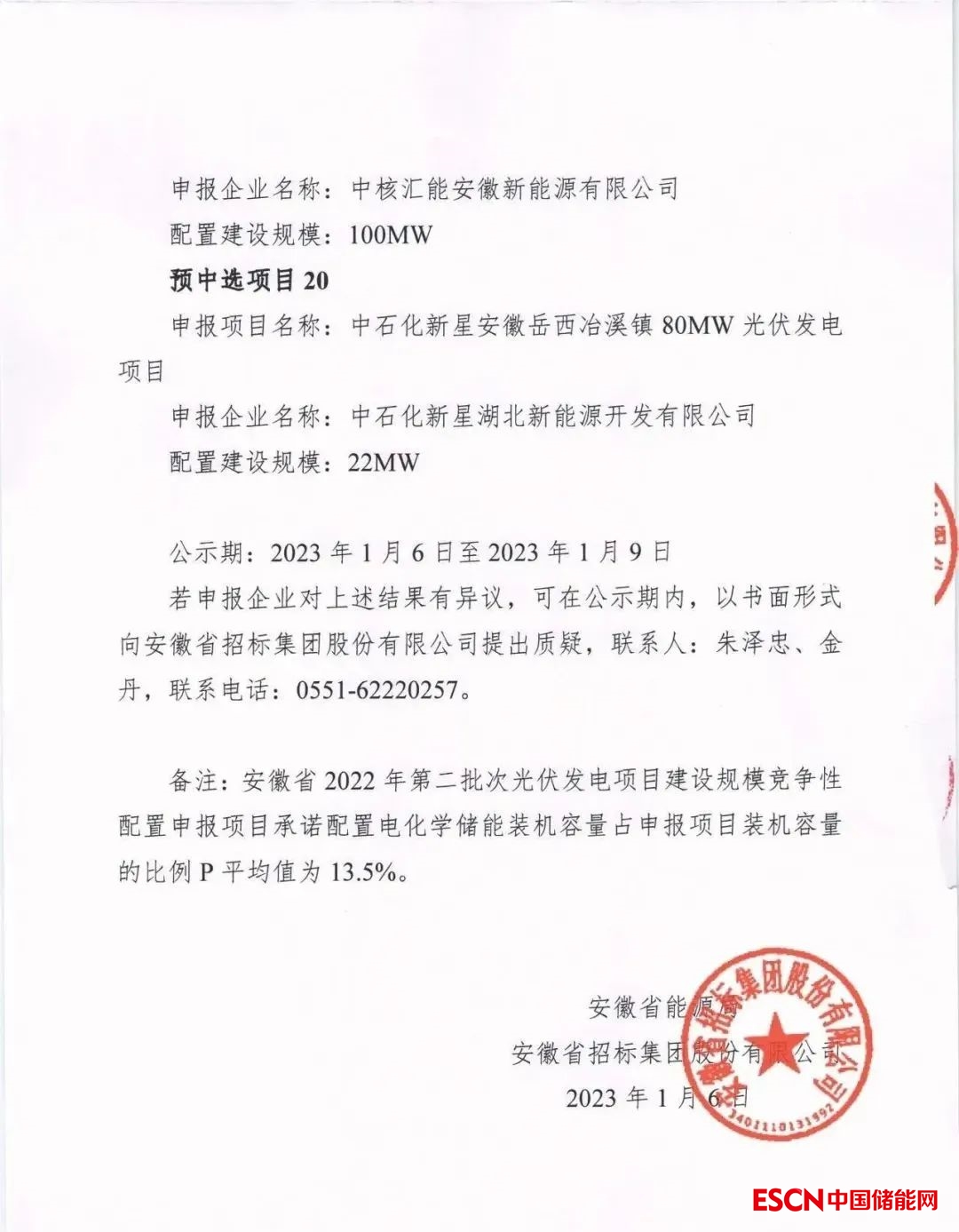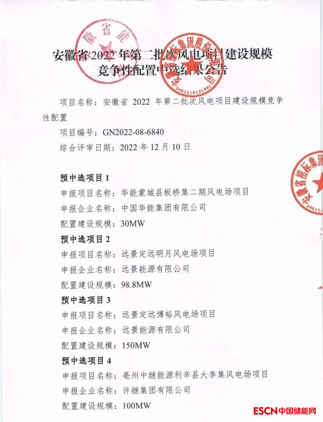 中國(guó)儲(chǔ)能網(wǎng)訊:近日,安徽省能源局發(fā)布了《安徽省2022年第二批光伏發(fā)電項(xiàng)目建設(shè)規(guī)模競(jìng)爭(zhēng)性配置中選結(jié)果公示》、《安徽省2022年第二批風(fēng)電發(fā)電項(xiàng)目建設(shè)規(guī)模競(jìng)爭(zhēng)性配置中選結(jié)果公示》。