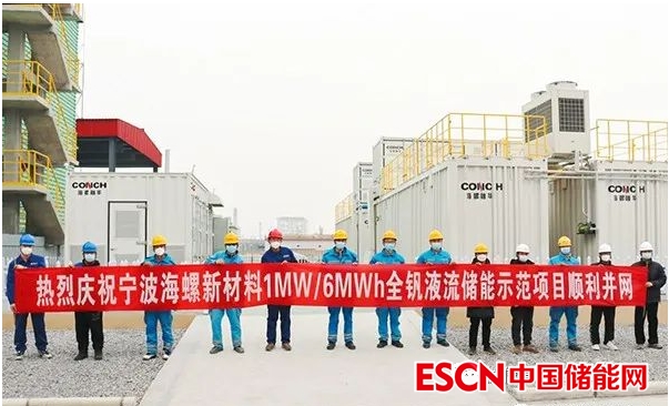 海螺寧波1MW/6MWh全釩液流儲能項目