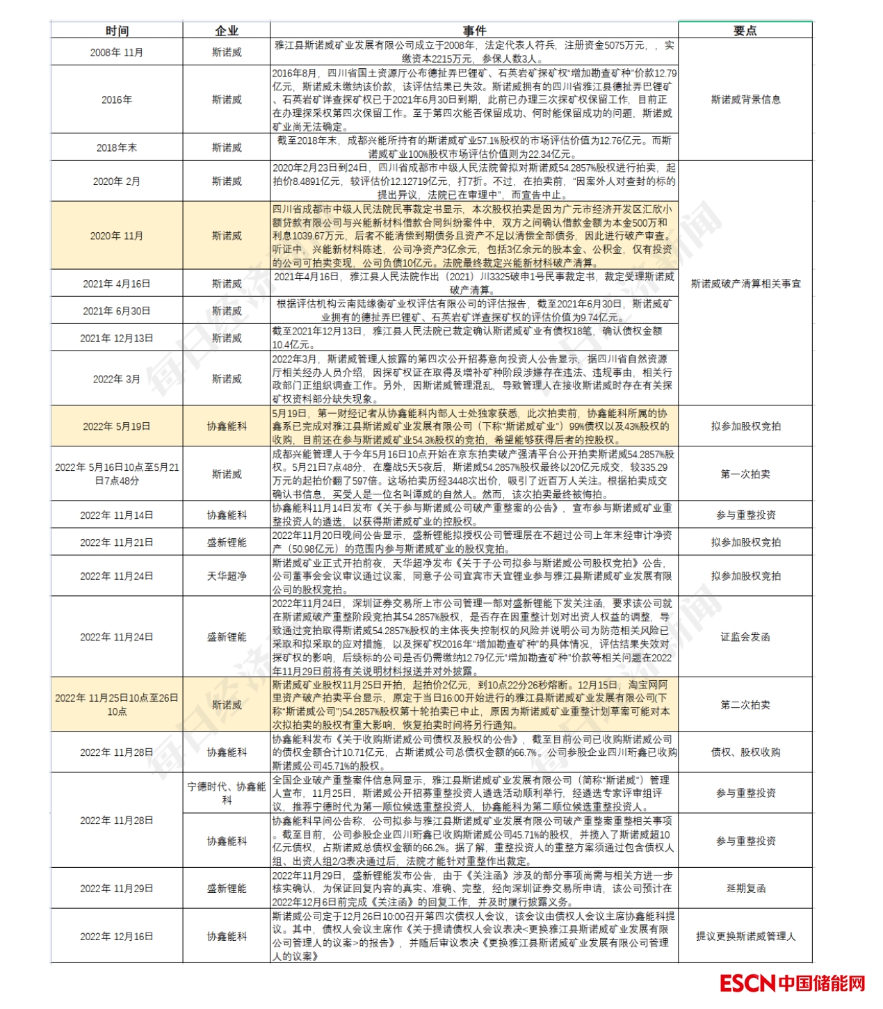 協(xié)鑫能科宣布參與斯諾威礦業(yè)重整投資人的遴選,以獲得斯諾威礦業(yè)的控股權(quán);天華超凈公告,與寧德時(shí)代共同設(shè)立的合資公司天宜鋰業(yè)參與競拍;盛新鋰能宣告競拍“彈藥儲備”高達(dá)50.98億元。