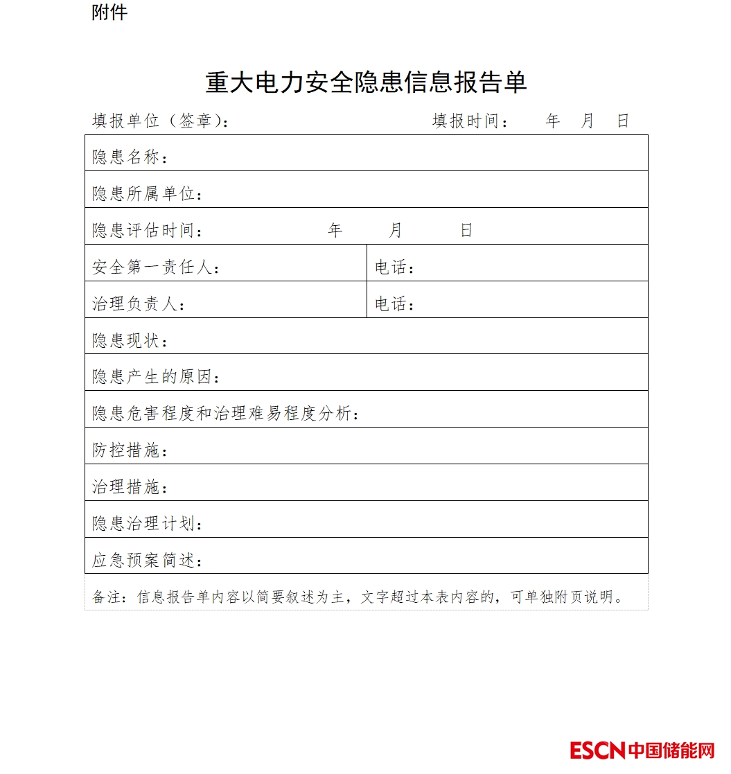 第十七條 對發(fā)現(xiàn)的重大隱患,國家能源局派出機(jī)構(gòu)、地方電力管理部門應(yīng)于10個(gè)工作日內(nèi)將隱患情況(詳見附件)逐級報(bào)送至國家能源局。