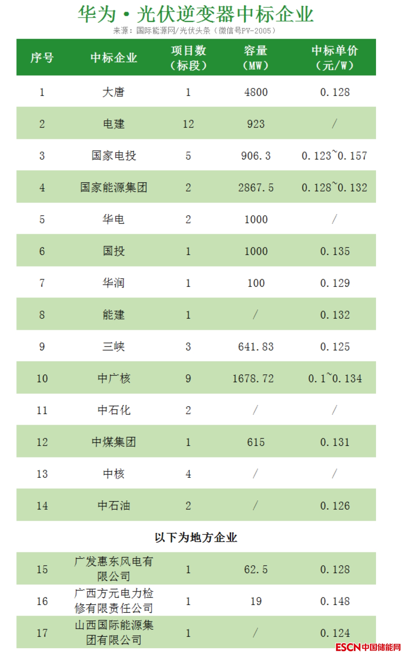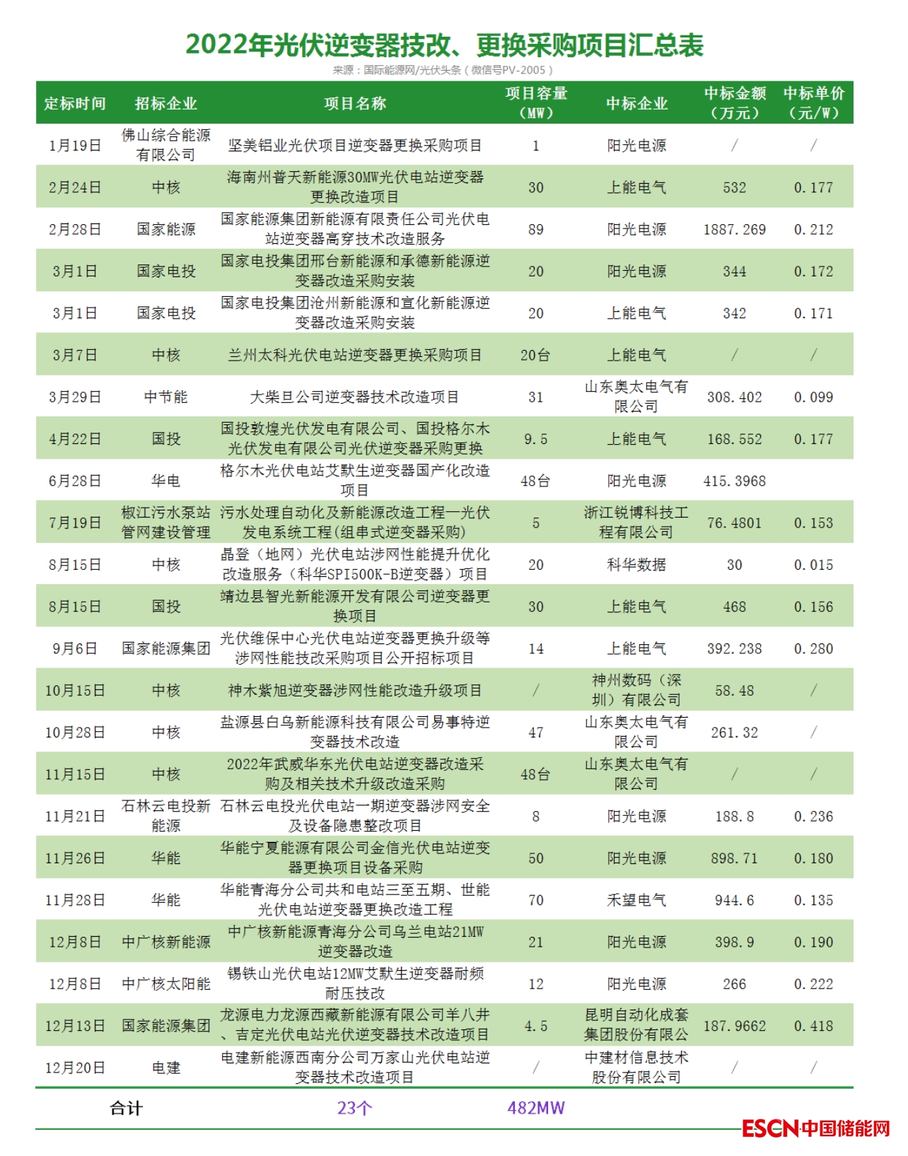 值得關注的是許多逆變器項目只確定了中標人,沒有確定中標價格。