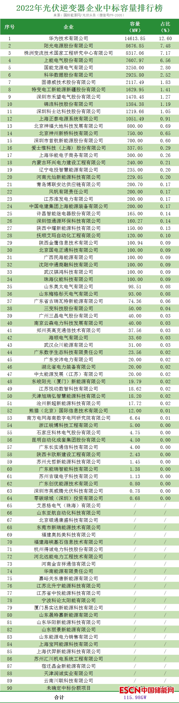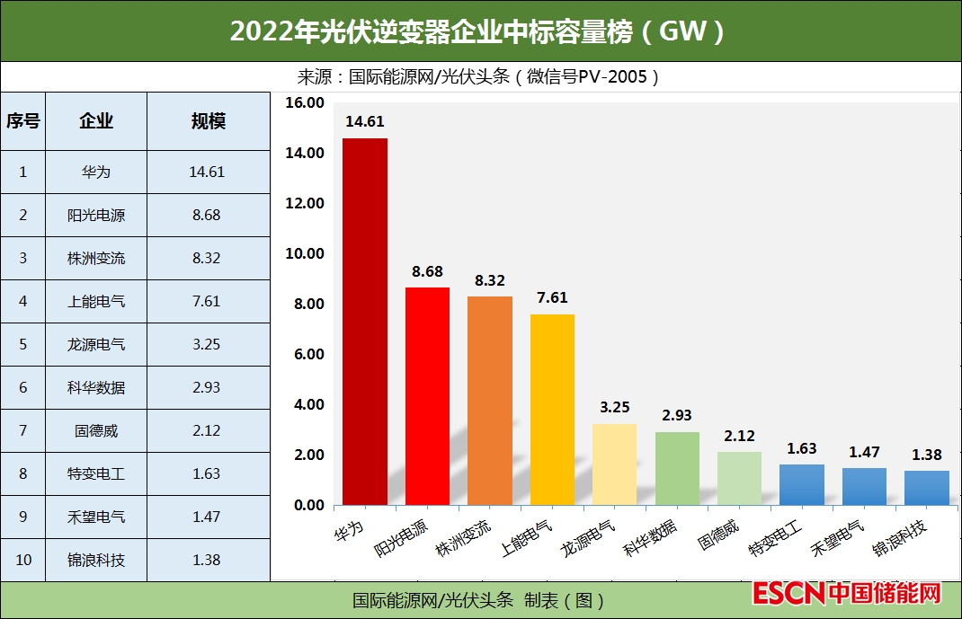 2022年光伏逆變器企業(yè)中標容量榜?。ㄇ笆?