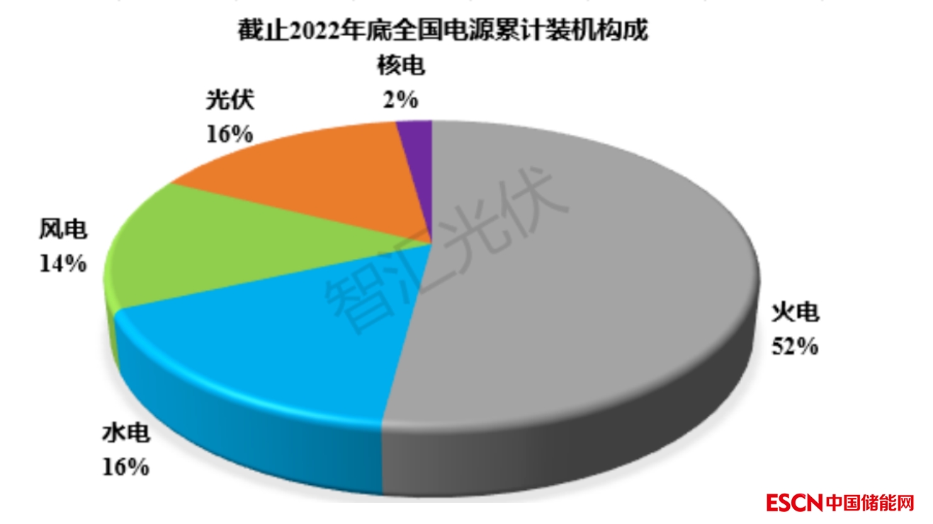 截止2022年底,各類電源累計(jì)裝機(jī)結(jié)構(gòu)如下圖所示。其中,風(fēng)電、光伏裝機(jī)占比達(dá)到30%。