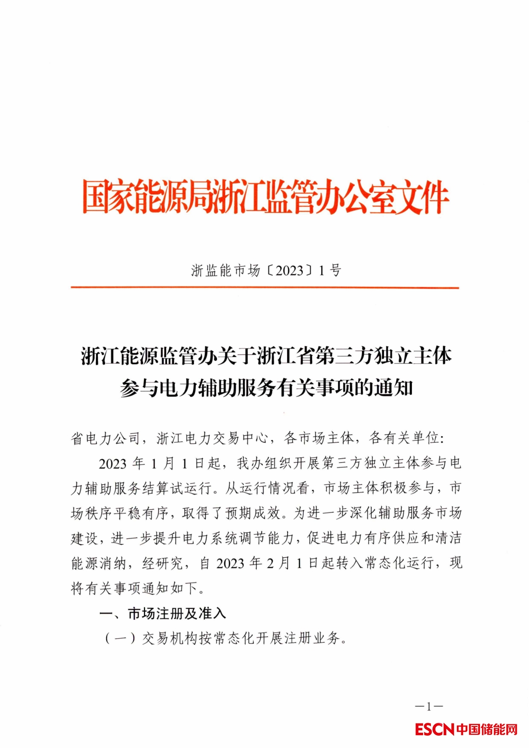 中國(guó)儲(chǔ)能網(wǎng)訊:2月1日,國(guó)家能源局浙江能源監(jiān)管辦發(fā)布了關(guān)于浙江省第三方獨(dú)立主體參與電力輔助服務(wù)有關(guān)事項(xiàng)的通知。