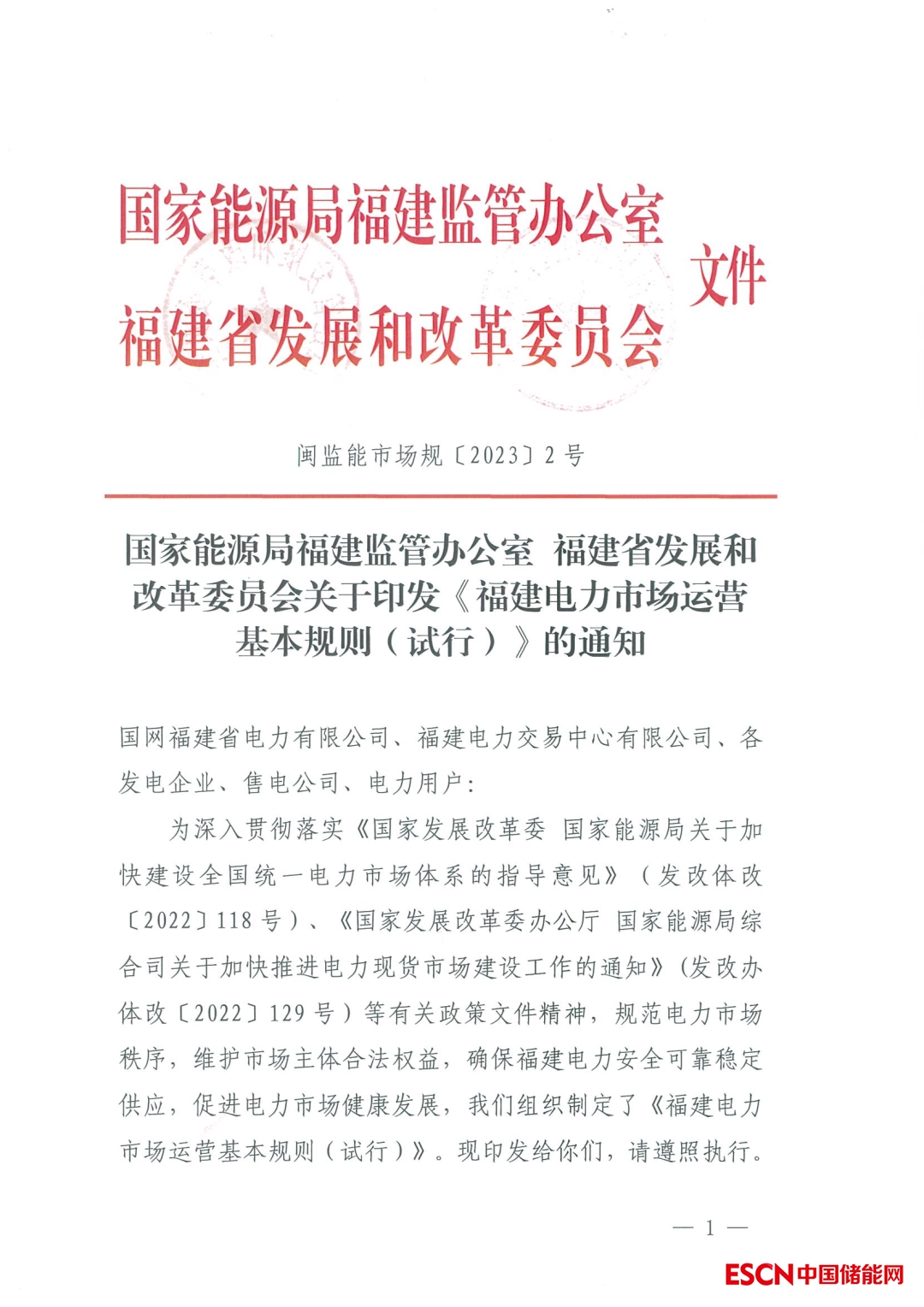 《福建電力市場運(yùn)營基本規(guī)則(試行)》發(fā)布 儲能可參與電力市場,適時開展容量市場