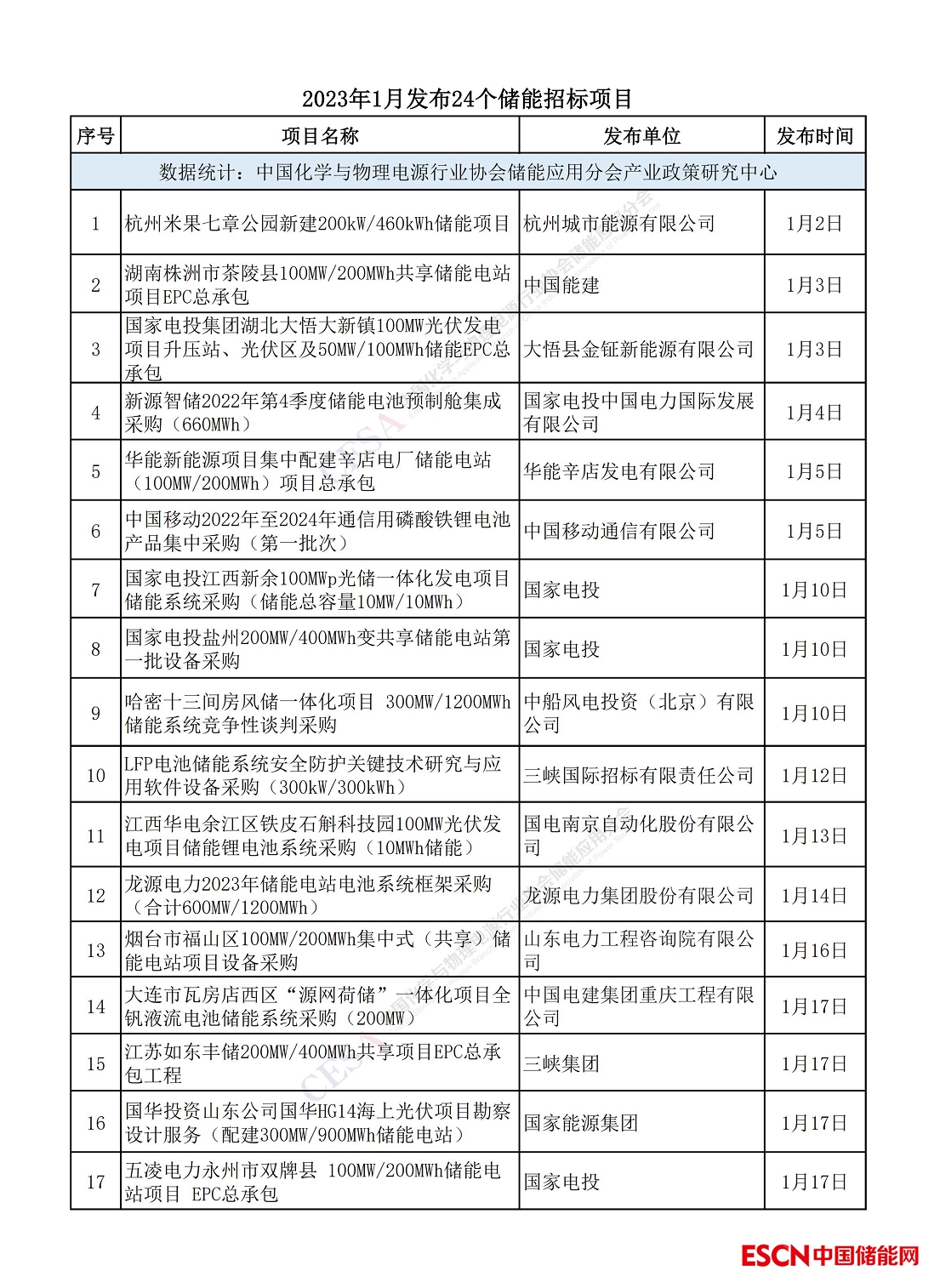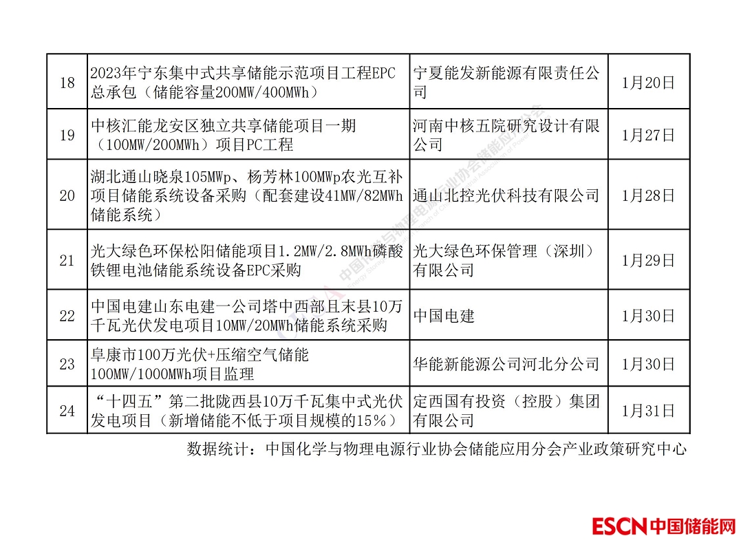 中國儲能網訊:據中國化學與物理電源行業(yè)協(xié)會儲能應用分會(簡稱“CESA")不完全統(tǒng)計,2023年1月發(fā)布24個儲能招標項目,儲能容量約為2.98GW/6.93GWh。在政策和資本市場的雙重引擎推動下,新型儲能市場仍然保持高速增長,產業(yè)發(fā)展態(tài)勢良好。