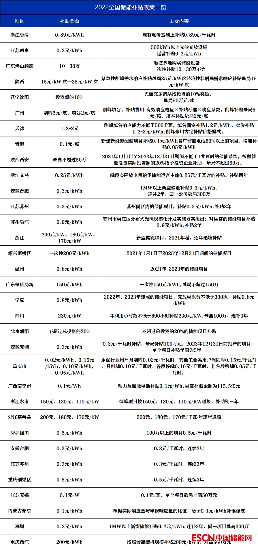 儲能補(bǔ)貼一覽