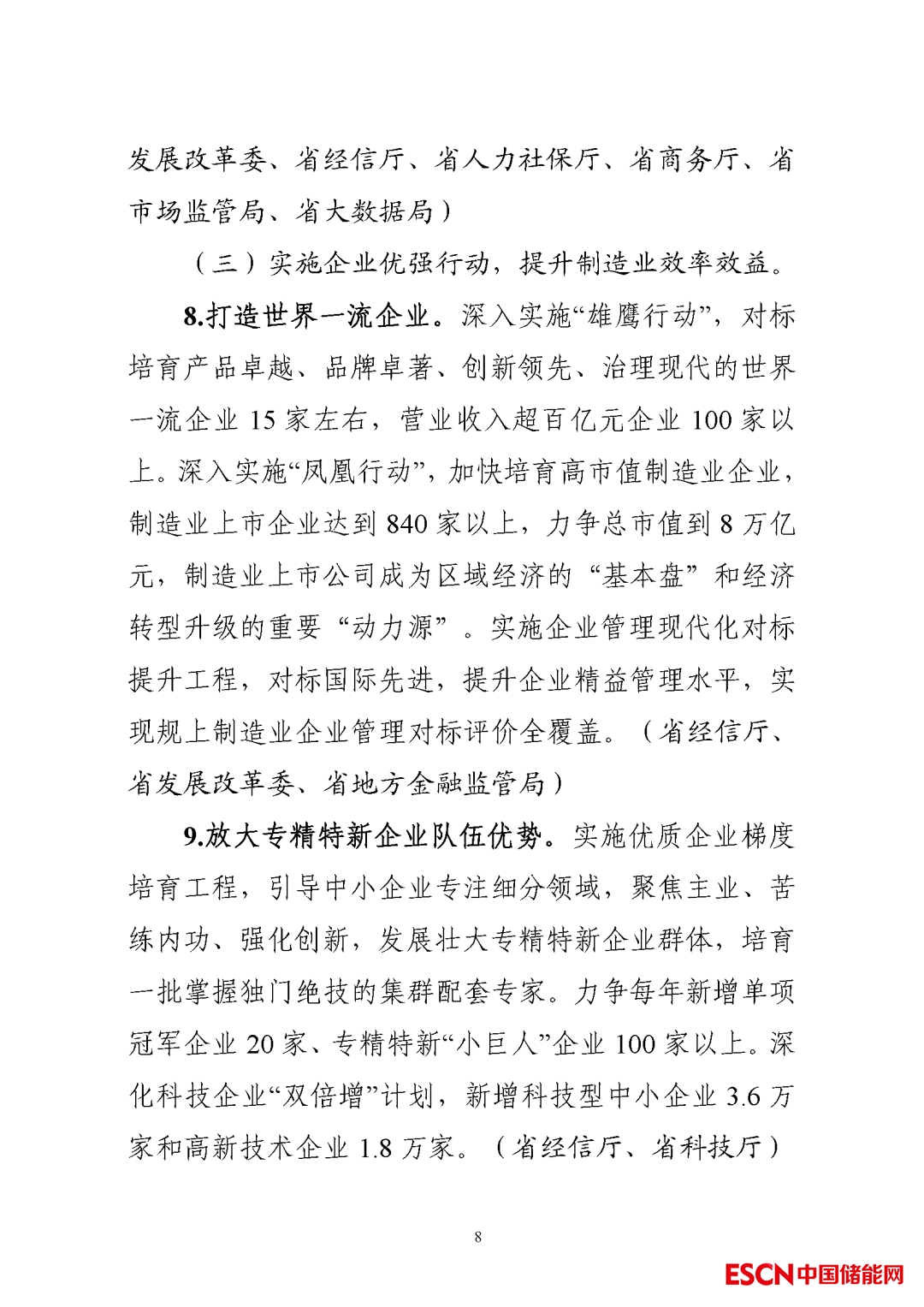實施千億技術(shù)改造投資工程。加快企業(yè)設(shè)備更新改造,每年實施重點技術(shù)改造項目5000項以上、新增應(yīng)用工業(yè)機器人15000臺以上。大力推進(jìn)節(jié)能降碳技術(shù)改造,實施省級節(jié)能降碳技術(shù)改造示范項目300個,建成綠色工廠500家、省級綠色低碳工業(yè)園區(qū)50個。構(gòu)建以核電為主體、風(fēng)電為重點,抽水蓄能、光伏、氫能、天然氣、生物質(zhì)能和海洋能等為補充的清潔能源開發(fā)體系,支持綠色微電網(wǎng)和源網(wǎng)荷儲一體化項目建設(shè),加強清潔能源應(yīng)用,推動省級開發(fā)區(qū)(園區(qū))工業(yè)屋頂光伏發(fā)電大規(guī)模、高比例、高質(zhì)量發(fā)展,支持有條件的市縣實施新建工業(yè)廠房屋頂光伏發(fā)電安裝全覆蓋,推動全省光伏發(fā)電裝機達(dá)到 3900 萬千瓦以上,可再生能源裝機比重提高到 43%以上。