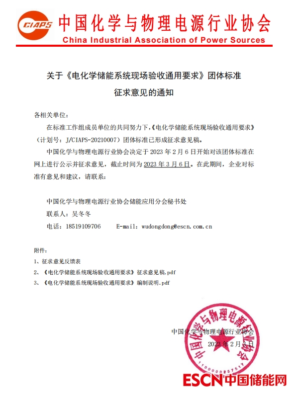 中國(guó)化學(xué)與物理電源行業(yè)協(xié)會(huì)決定于2023年2月6日開始對(duì)該團(tuán)體標(biāo)準(zhǔn)在網(wǎng)上進(jìn)行公示并征求意見(jiàn),截止時(shí)間為2023年3月6日。在此期間,企業(yè)對(duì)標(biāo)準(zhǔn)有意見(jiàn)和建議,請(qǐng)聯(lián)系: