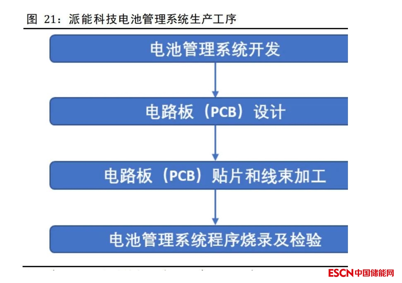 以派能科技為例,公司自主開展電池管理系統(tǒng)的開發(fā)及電路板(PCB) 的設(shè)計,同時負責(zé)全部電子元器件的選型、采購和檢驗等。電路板的其它標(biāo)準(zhǔn)化生產(chǎn)流程采取外協(xié)加工方式完成。電路板生產(chǎn)完成后,公司負責(zé)電池管理系統(tǒng)的程序燒錄及檢驗等。電池管理系統(tǒng)的生產(chǎn)過程中涉及的原材料主要為電子元器件和 PCB 的采購。