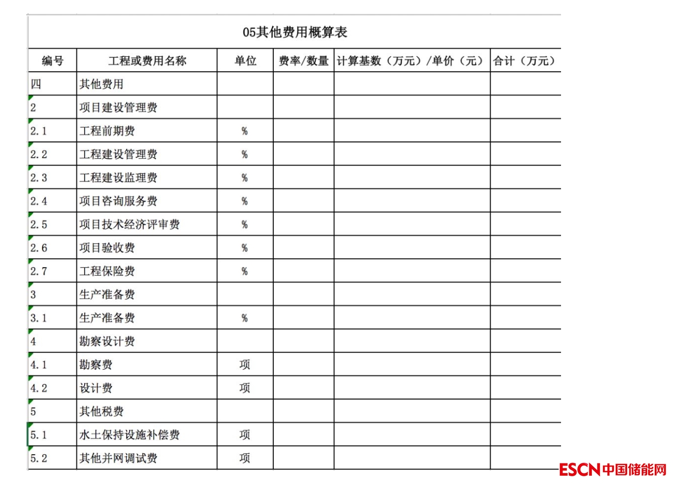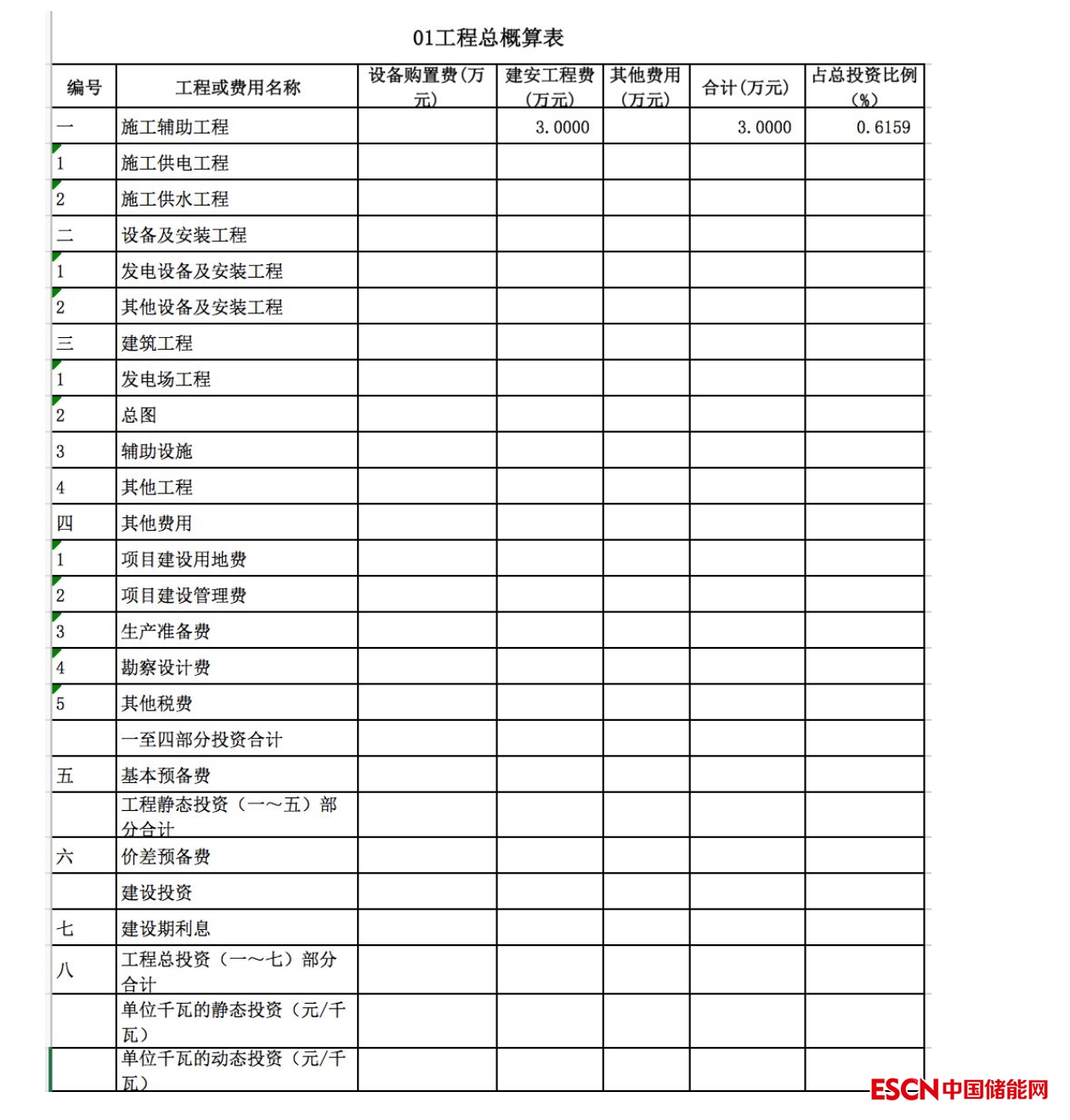 包含:發(fā)電廠區(qū)工程、變電站工程、房屋工程、交通工程等費用。如下表所示。
