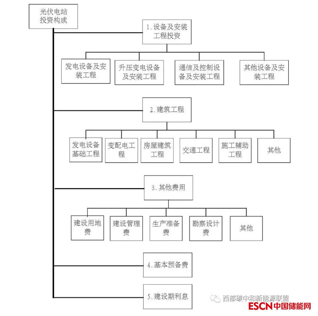 如前文所述,光伏系統(tǒng)投資大致可分為五部分,如下圖所示。