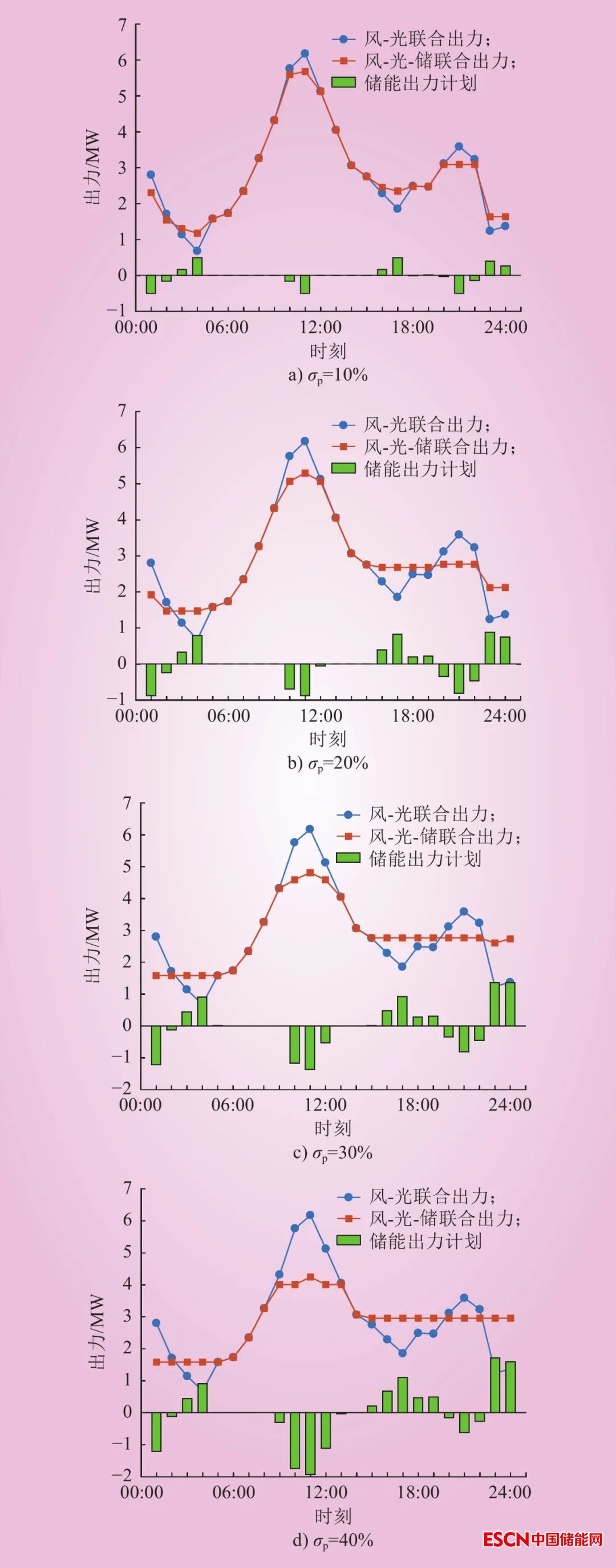 圖4 不同σp下風(fēng)-光-儲(chǔ)聯(lián)合出力情況