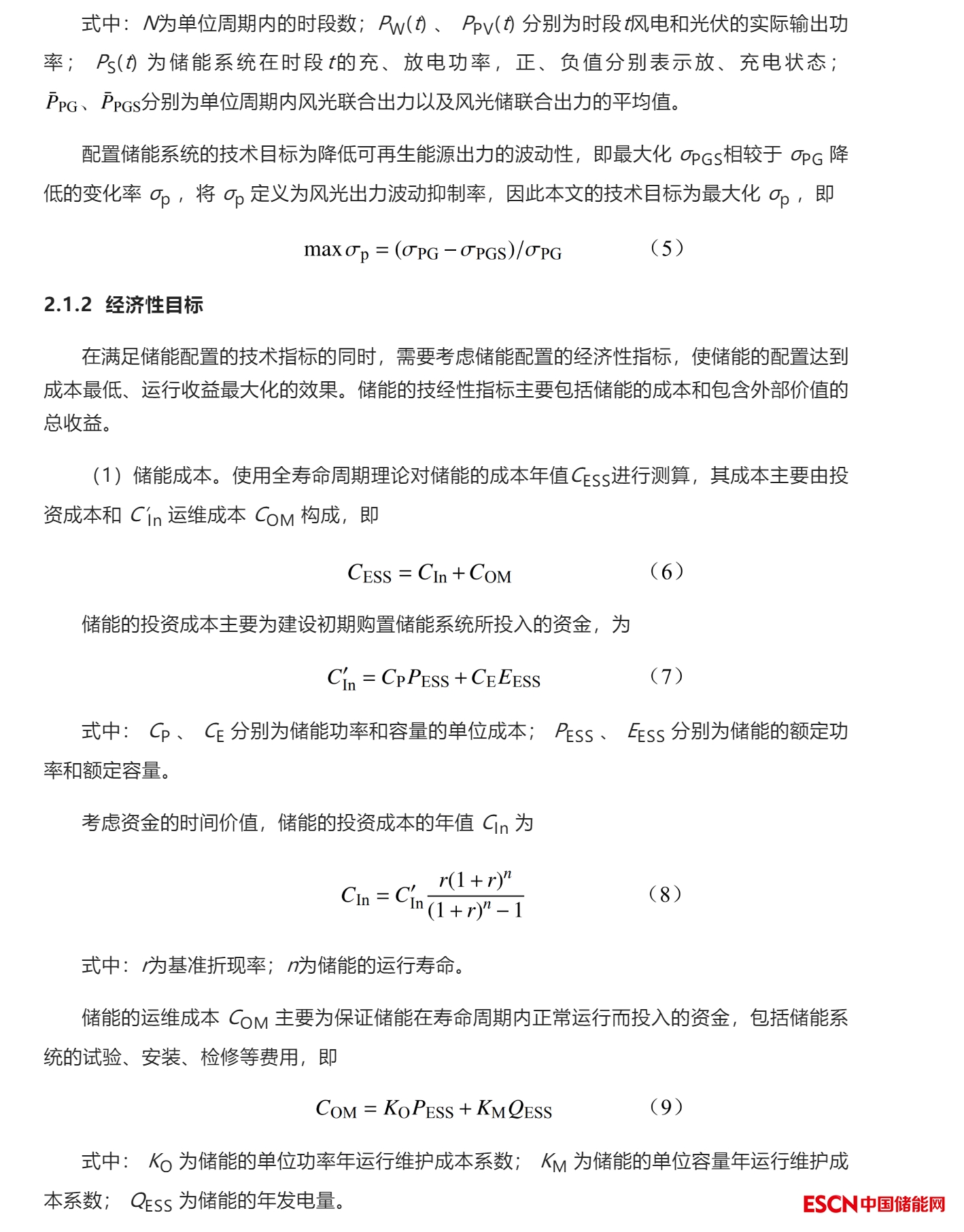 2 儲(chǔ)能技術(shù)經(jīng)濟(jì)性優(yōu)化配置模型