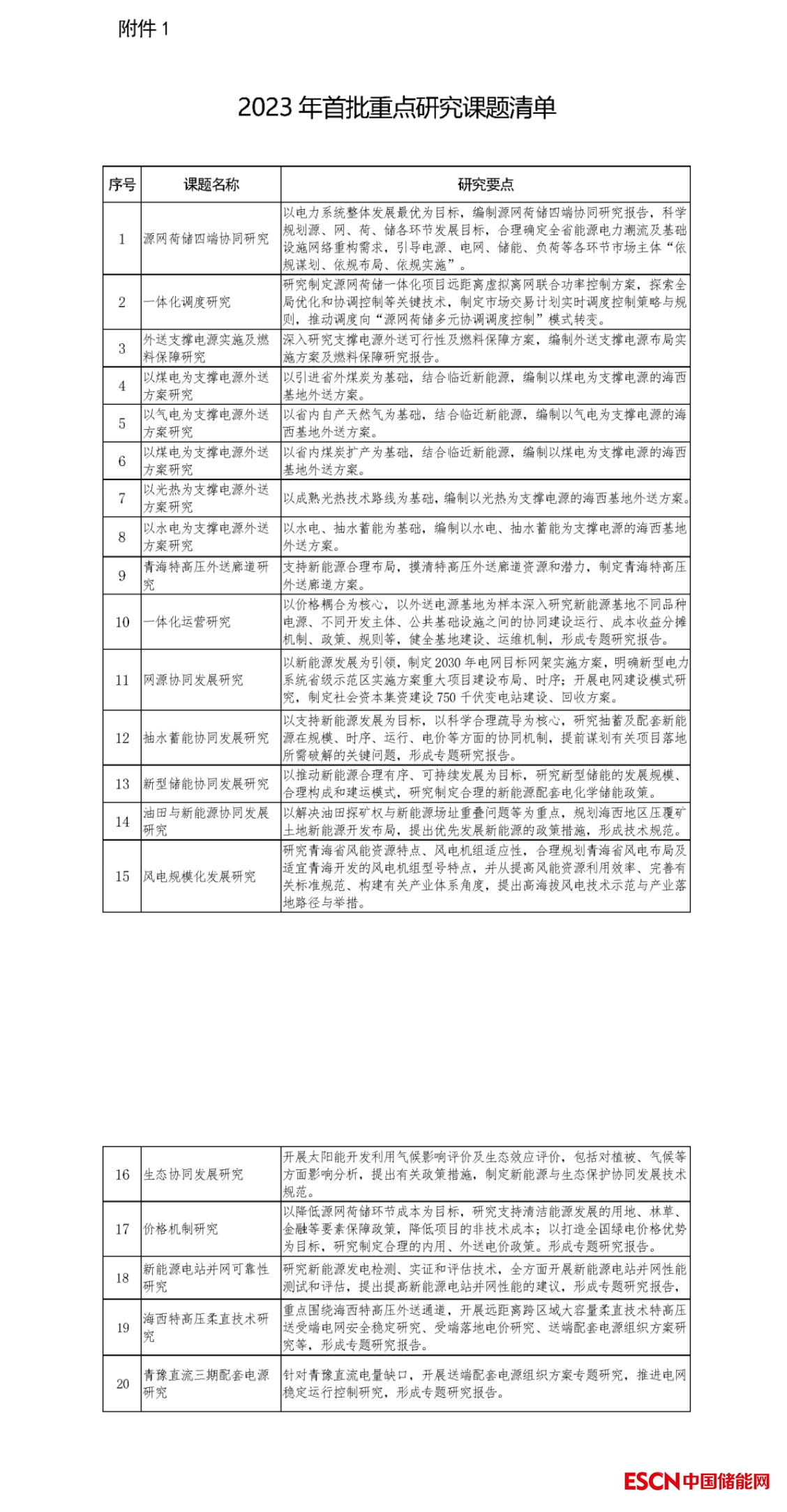 2023年首批重點(diǎn)研究課題內(nèi)容圍繞源網(wǎng)荷儲(chǔ)四端協(xié)同、一體化調(diào)度、外送電源基地布局、一體化運(yùn)營(yíng)、網(wǎng)源協(xié)同發(fā)展、抽水蓄能協(xié)同發(fā)展、新型儲(chǔ)能協(xié)同發(fā)展、風(fēng)電規(guī)?;l(fā)展、生態(tài)協(xié)同發(fā)展、價(jià)格機(jī)制、新能源電站并網(wǎng)可靠性等,開(kāi)展14個(gè)方面的專題研究,共20個(gè)課題,具體內(nèi)容見(jiàn)附件1。