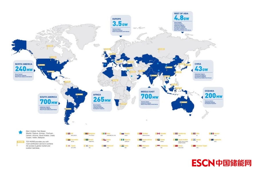 TüV北德集團(tuán)在全球70 多個國家設(shè)有超過150 家分支機(jī)構(gòu),這些分支機(jī)構(gòu)遍布?xì)W洲、亞洲、非洲和美洲。其核心服務(wù)主要體現(xiàn)在測試、 檢驗、 認(rèn)證、 教育及工程,涉及工業(yè)、能源、鐵路、車輛、環(huán)境保護(hù)、IT、自然資源、航空航天等行業(yè)。作為有著150多年歷史的全球知名檢測認(rèn)證第三方,TüV北德為全球客戶提供新能源方面的技術(shù)解決方案。截止2023年1月,TüV北德在全球已累計完成超過60GW全球系統(tǒng)評估量、全過程質(zhì)量監(jiān)督、出貨前檢驗等服務(wù);已幫助眾多國內(nèi)外企業(yè)的儲能系統(tǒng)接入各國電網(wǎng),完成600多個并網(wǎng)認(rèn)證項目。