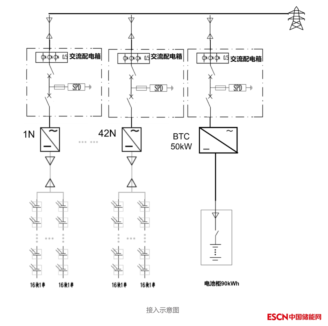 某村共120戶居民,其中30戶別墅家庭平時用電量較大,安裝儲能系統(tǒng),平均每戶安裝12.8kWp光伏及6.6kWh儲能,整個村總容量為384kWp光伏和198kWh儲能,如圖所示。