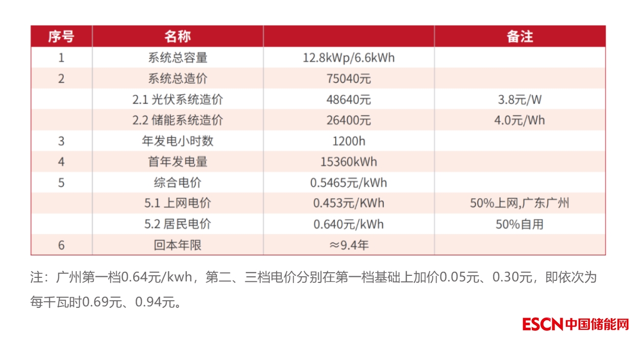 以單戶12.8kWp/6.6kWh儲能系統(tǒng)來測算: