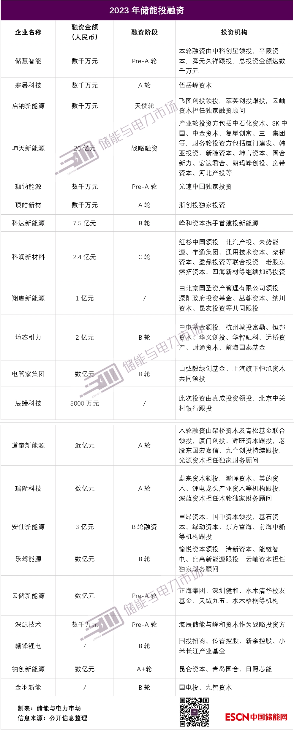 2023年以來儲(chǔ)能產(chǎn)業(yè)鏈投融資事件總覽