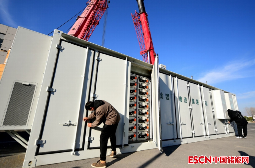 2022年12月,江蘇南通的一個(gè)工業(yè)園區(qū)里,工作人員正將4個(gè)儲(chǔ)能電站裝車。上述儲(chǔ)能設(shè)備將被發(fā)往新疆,用于配套光伏發(fā)電站。