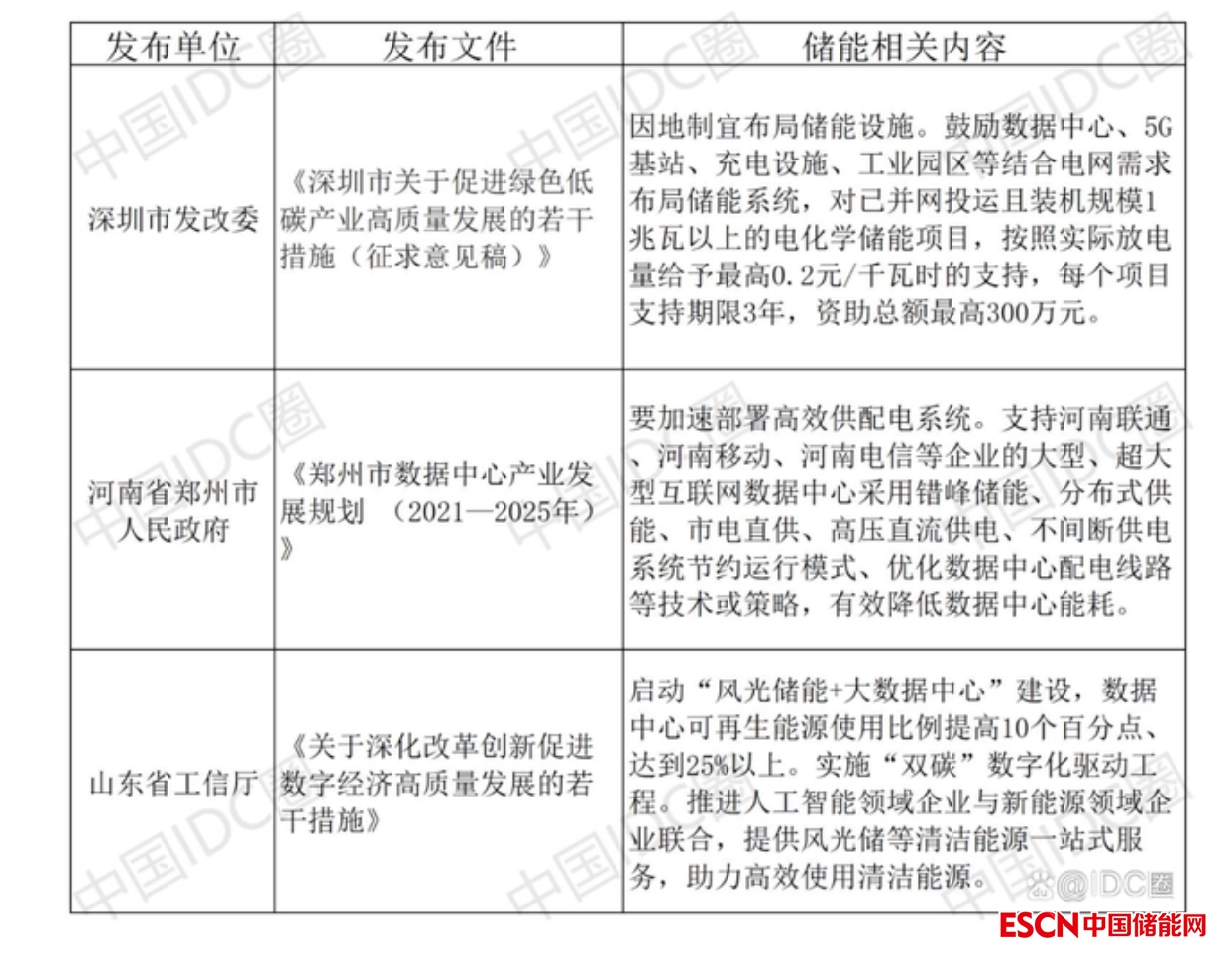 圖:部分?jǐn)?shù)據(jù)中心與儲能結(jié)合發(fā)展政策整理