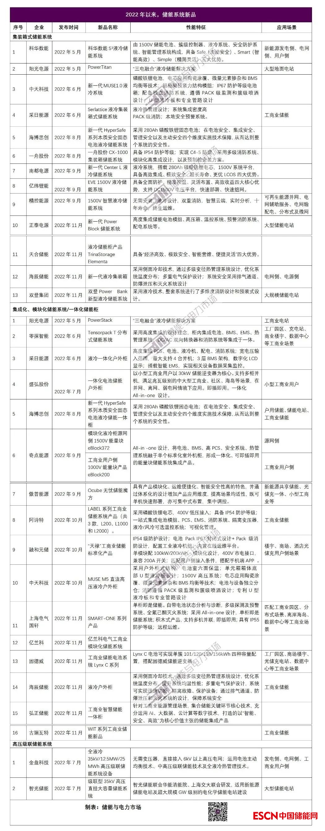 市場“狂飆”,各廠商也加速了產(chǎn)品更新迭代的進程。根據(jù)儲能與電力市場對公開信息進行的統(tǒng)計,去年以來,科華數(shù)能、陽光電源、億緯鋰能、采日能源、星云時代、海博思創(chuàng)、海辰儲能、中天科技、上海電氣國軒、天合儲能、阿詩特、盛弘股份等數(shù)十家廠商均推出新品,覆蓋電網(wǎng)級儲能、工商業(yè)儲能、戶用儲能等多元場景。