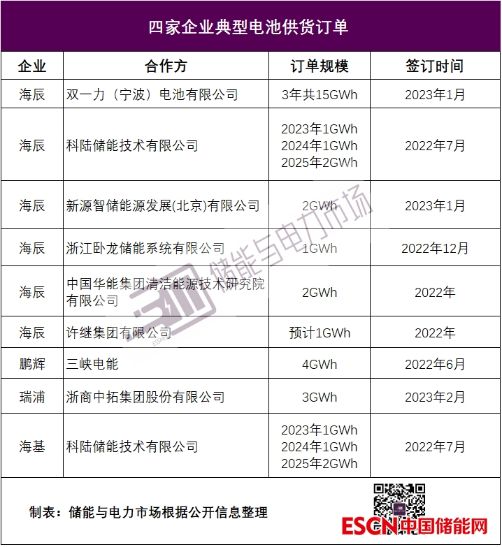 海辰2022年訂單量超4.7GWh,出貨量達(dá)5GWh,僅2023年1-2月的訂單量就已超過20GWh。除了與許繼、南網(wǎng)電力科技等達(dá)成了多次合作外,海辰也與新源智儲、雙一力、宜春科陸等新建立了合作關(guān)系。