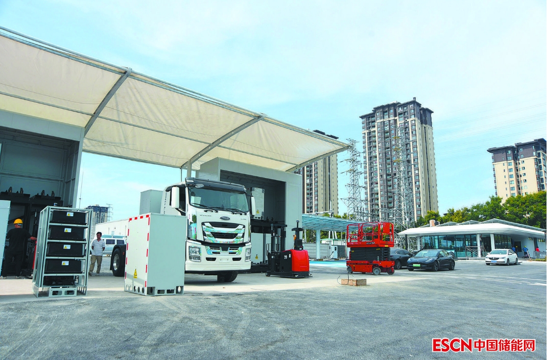 銅梁玉泉“光儲充檢換”一體站重型卡車換電區(qū)。顏玲莉 攝