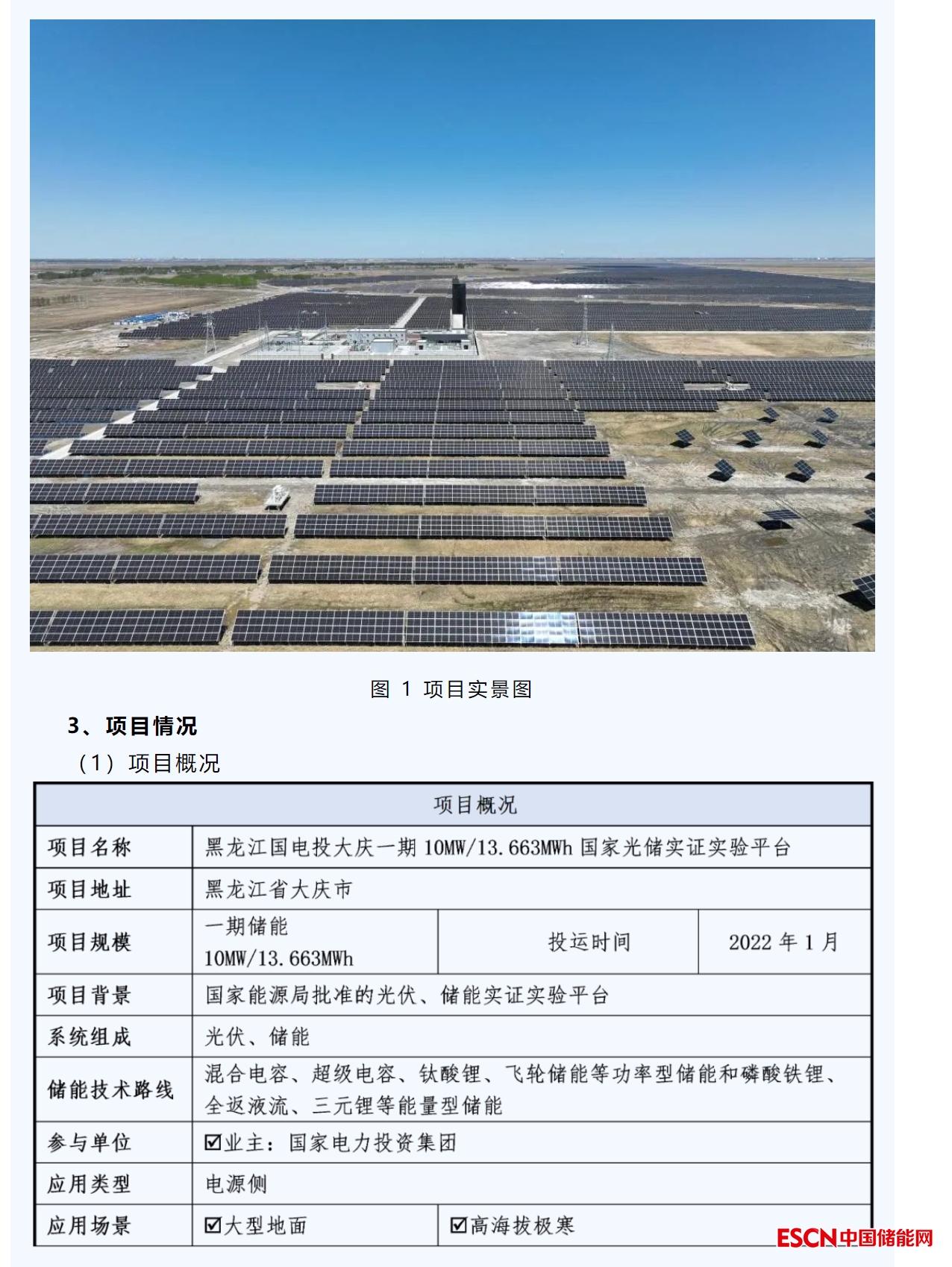一、黑龍江國電投大慶一期10MW/13.663MWh國家光儲實證實驗平臺