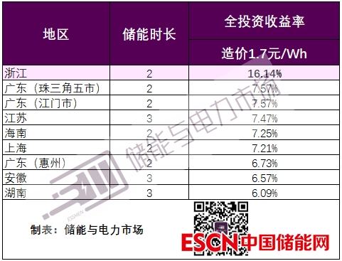 以1.7元/Wh的造價測算,浙江全投資收益率為16.14%。